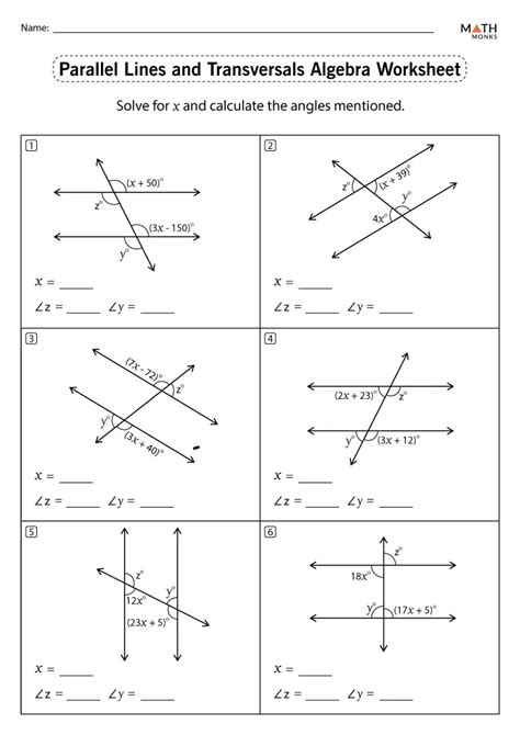 If you are looking for algebra worksheet answers for parallel lines transversals, it is important to understand the basics of the concept first. Once you have a grasp of the basics, you can then start to apply the information to solve various problems. To find algebra worksheet answers for parallel lines transversals, you need to first identify the coordinates of the two points of intersection. Then, you can use the equation of the line to find the slope and the intercept. After that, you can use the slope and intercept to find the equation of the line that passes through the two points of intersection.